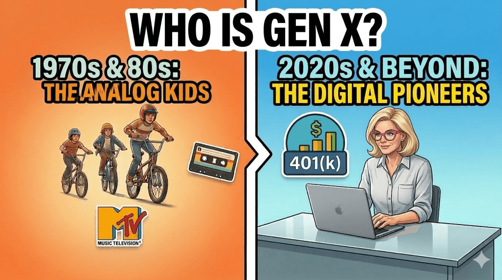 I am a Gen Xer—born between 1965 and 1980—and when I look back, I see a generation shaped by freedom, responsibility, and quiet resilience. We were the in-between kids. The bridge between analog and digital, between stay-at-home moms and working moms, between pensions and retirement plans.