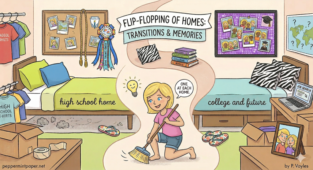 Transitions are never easy, especially the big ones. All I can do is reassure her that everything will fall into place. And no matter where she goes or how many new “homes” she creates, I’ll always make sure there’s a place here for her to leave her flip-flops while she figures it all out.